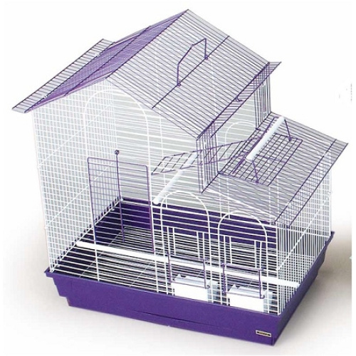 This roomy house style bird cage features a double roof. With a top drop down perch door and large front opening door, you will have easy access to your birds.