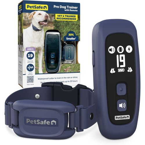 Strengthen the bond between you and your dog with the PetSafe Pro Dog Trainer, an effective static training collar that works like a light tap on the shoulder to get your dog?s attention and gently nudge them towards better behavior. Use one of three distinct training modes including tone, vibration and 19 levels of static, to communicate behavior modifications with a reliable and safe method. Teach your dog to obey commands, display better household manners and develop enough control to enjoy more off-leash freedom. With a range up to 1000 feet, the PetSafe Pro Dog Trainer is ideal for building a better connection between owner and dog on outdoor adventures like hiking, playing in open fields or exploring the woods. It can also be used to build better behavior in short-range situations like at-home or backyard training. Rechargeable and waterproof with a sleek design, the static dog collar is easy to use and helps keep your dog safe. Trusted and recommended by both veterinarians and trainers for 25 years, our static dog collar will help your pet go from a good dog to a great dog.